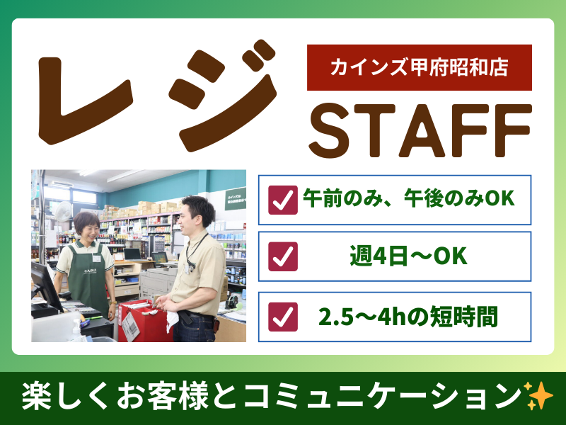 【カインズ甲府昭和店】ホームセンターのレジスタッフ【中巨摩郡昭和町の求人】