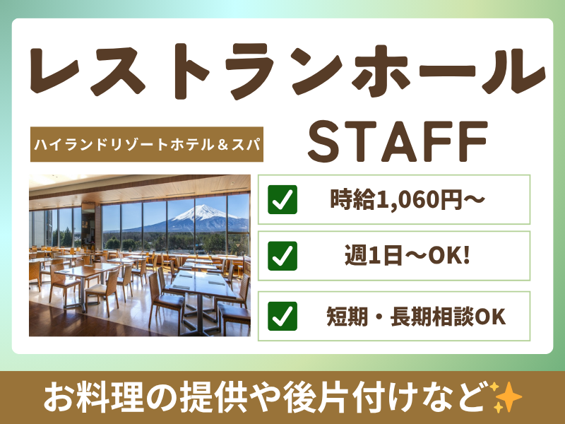 | 職種 | ハイランドリゾートホテル&スパのレストランホールSTAFF |