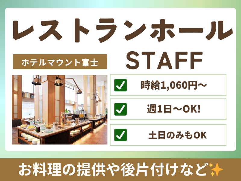 ホテルマウント富士にて、ホール業務を担当していただきます。