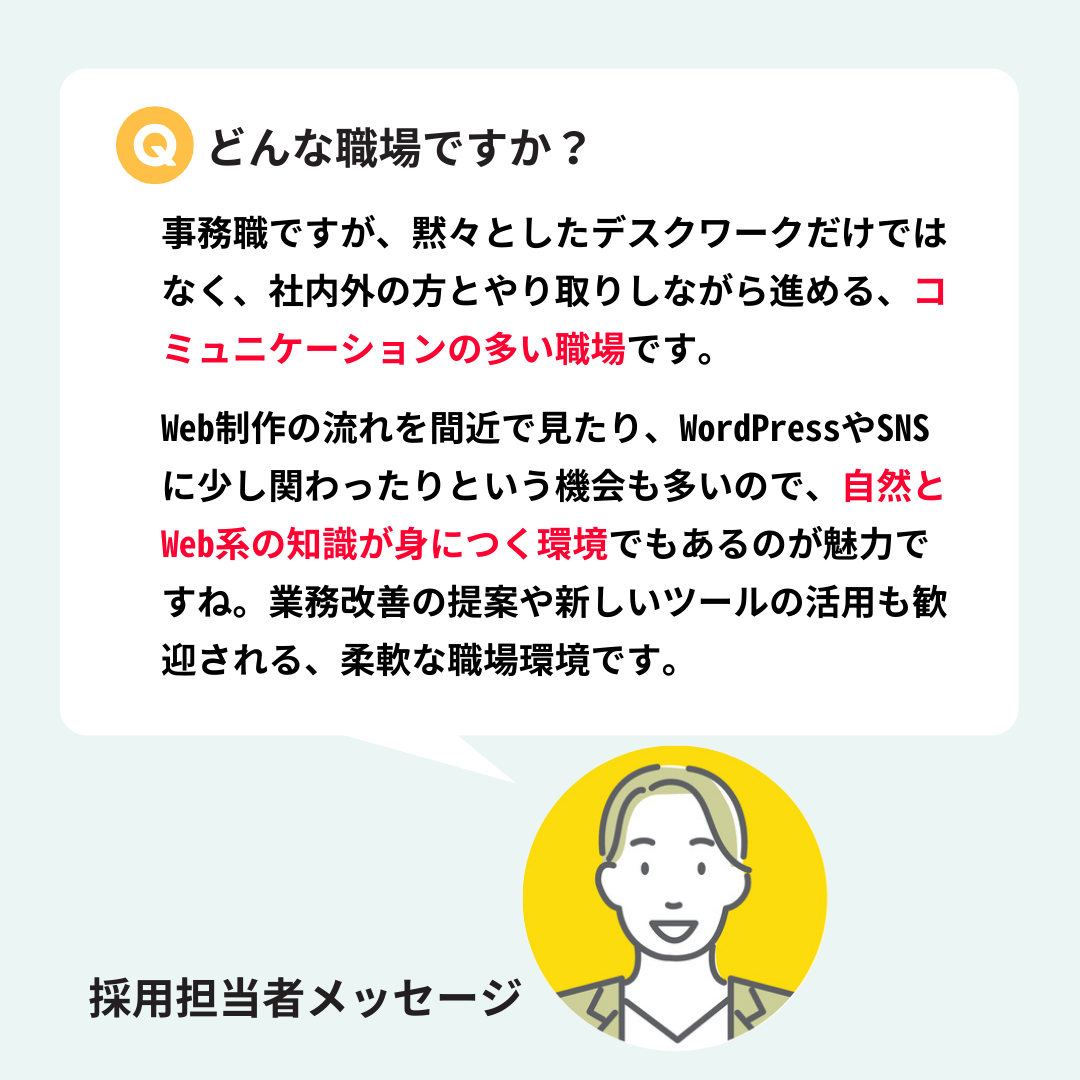 | 職種 | WEB制作会社の経理総務事務スタッフ |