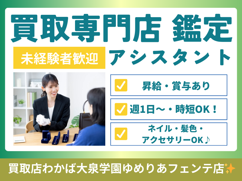 NEW 【買取店わかば大泉学園ゆめりあフェンテ店】週1日~・時短OK! 買取専門店の鑑定アシスタント【東京都練馬区の求人】