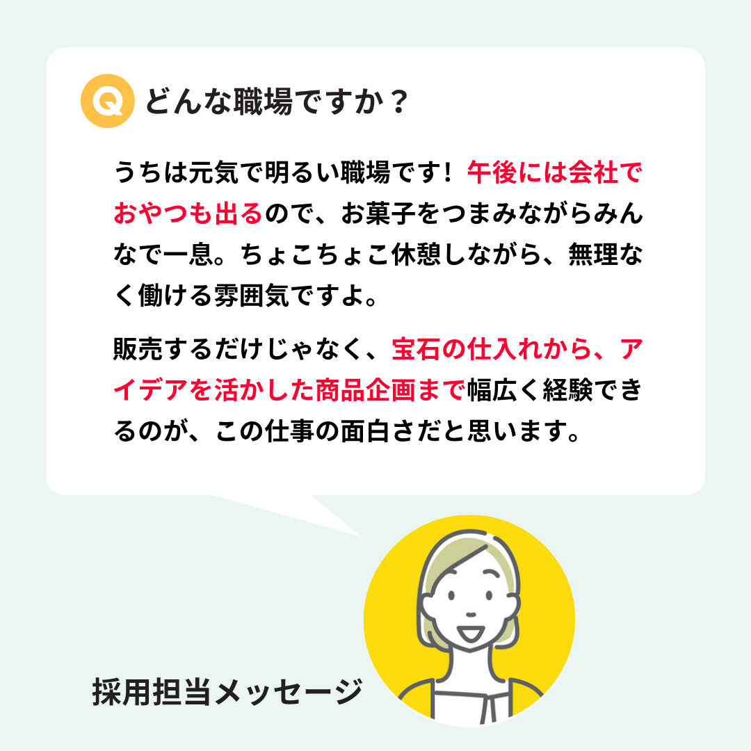| 職種 | ジュエリー(宝飾品)の営業販売スタッフ |
