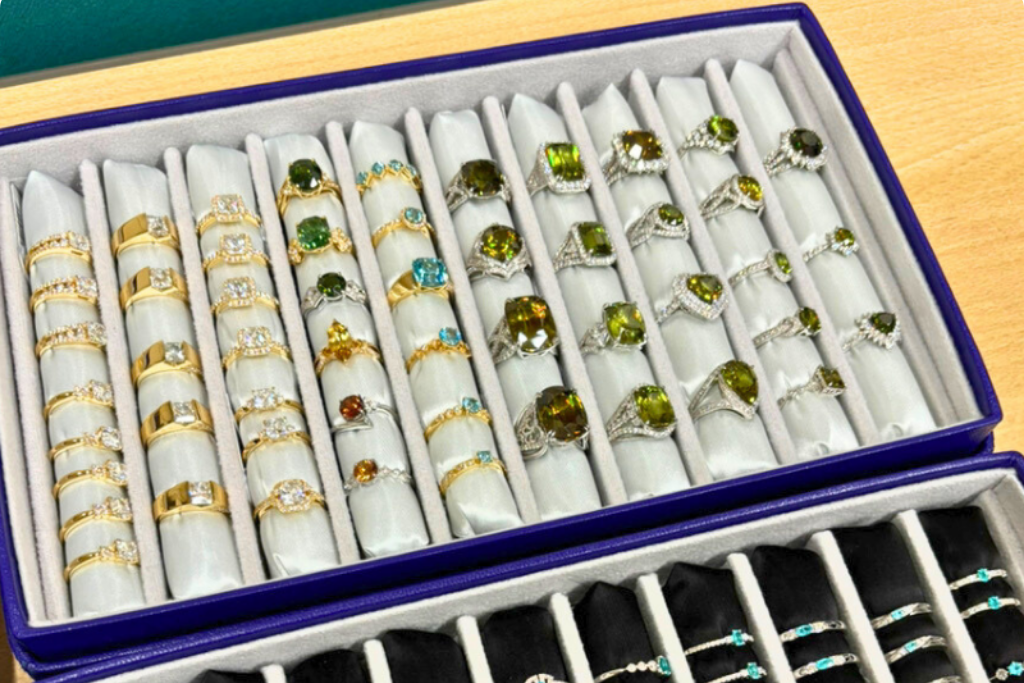 海外の展示会に行って、宝石を仕入れたり、その素材を使って「こんなデザインにしよう!」とアイデアをカタチにしたり…まるでモノづくりに関わる感覚も楽しめます♪