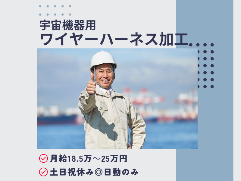 (月平均残業時間20時間以内)──────────────── \未経験から“宇宙”に関わる仕事ができる!/ 宇宙機器用ワイヤーハーネス加工 ──────────────── ■おすすめPOINT3選 ✅️ 月給18.5万 […] -